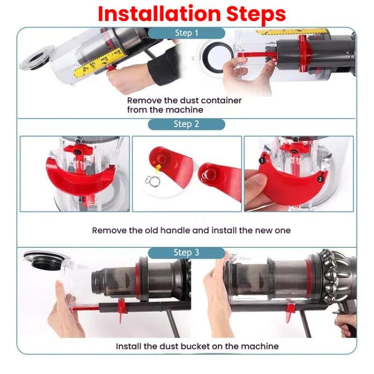 1. Upgrade bucket handle with trigger-release switch button for Dyson V10/V11/V15 cyclone dustbins.